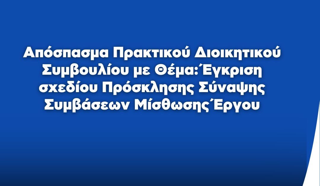 Απόσπασμα Πρακτικού Διοικητικού Συμβουλίου με Θέμα: Έγκριση σχεδίου Πρόσκλησης Σύναψης Συμβάσεων Μίσθωσης Έργου