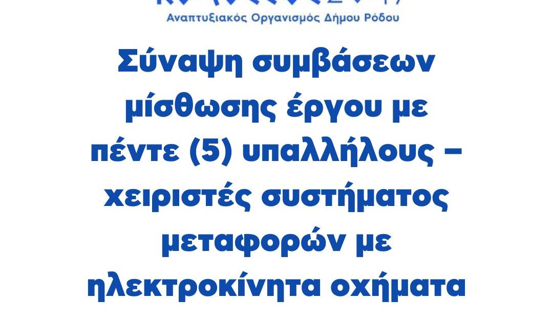 Πρόσκληση εκδήλωσης ενδιαφέροντος για τη σύναψη συμβάσεων μίσθωσης έργου με πέντε (5) υπαλλήλους – χειριστές συστήματος μεταφορών με ηλεκτροκίνητα οχήματα