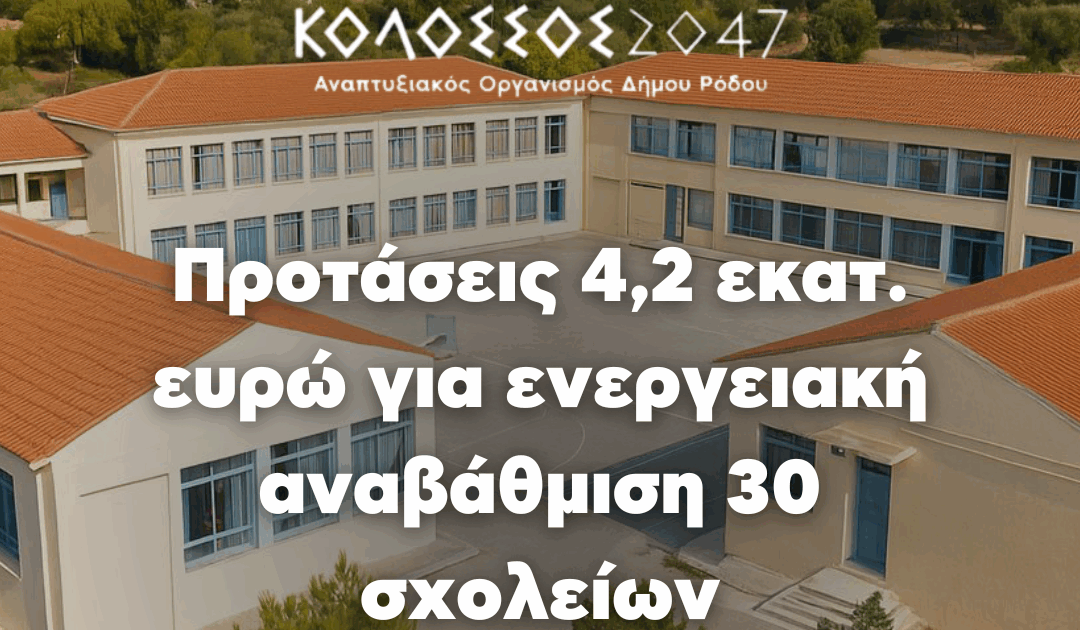 Β.Καλοπήτας: «Υποβολή προτάσεων 2,9 εκατ. ευρώ από τον Αναπτυξιακό Οργανισμό ΚΟΛΟΣΣΟΣ 2047 για την ενεργειακή αναβάθμιση 16 σχολικών μονάδων»