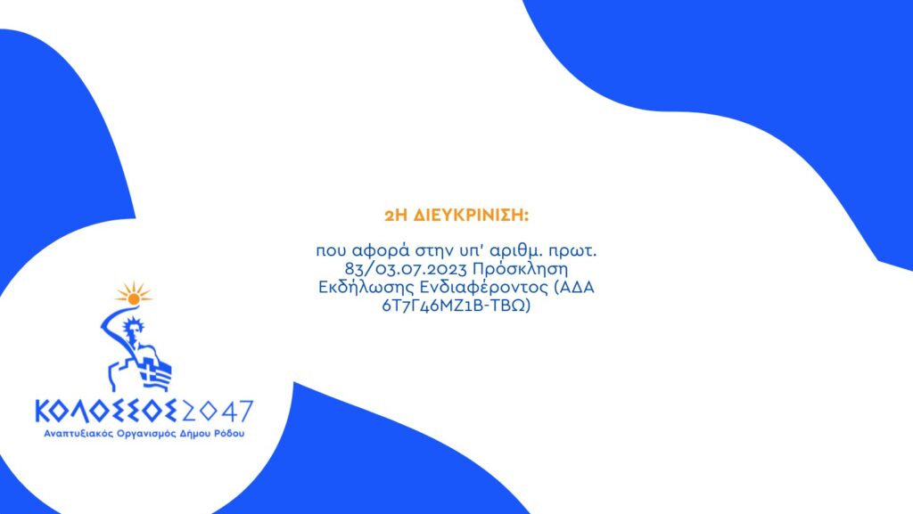2η ΔΙΕΥΚΡΙΝΙΣΗ που αφορά στην υπ’ αριθμ. πρωτ. 83/03.07.2023 Πρόσκληση Εκδήλωσης Ενδιαφέροντος (ΑΔΑ 6Τ7Γ46ΜΖ1Β-ΤΒΩ)