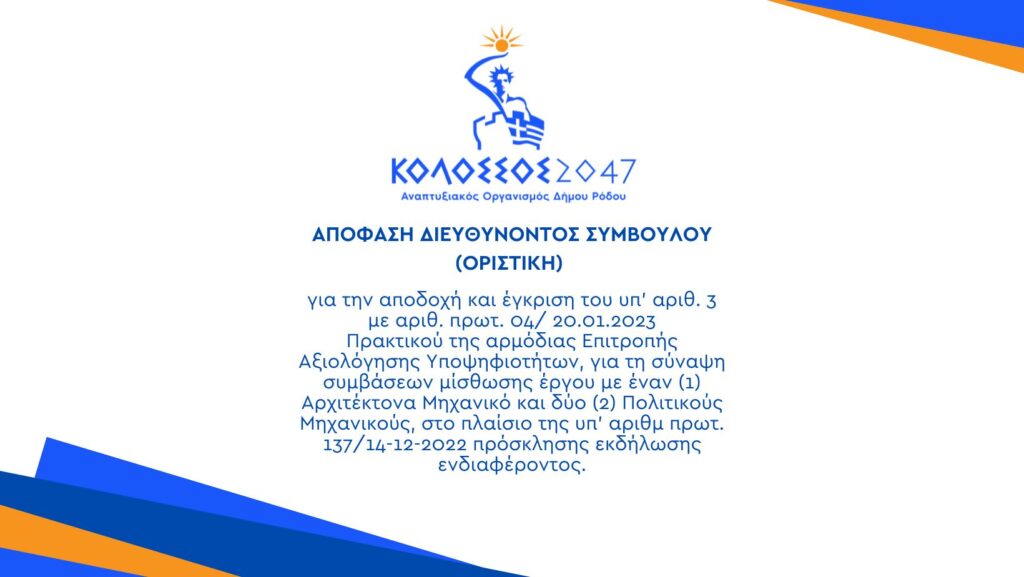 ΑΠΟΦΑΣΗ ΔΙΕΥΘΥΝΟΝΤΟΣ ΣΥΜΒΟΥΛΟΥ (ΟΡΙΣΤΙΚΗ) για την αποδοχή και έγκριση του υπ’ αριθ. 3 με αριθ. πρωτ. 04/ 20.01.2023