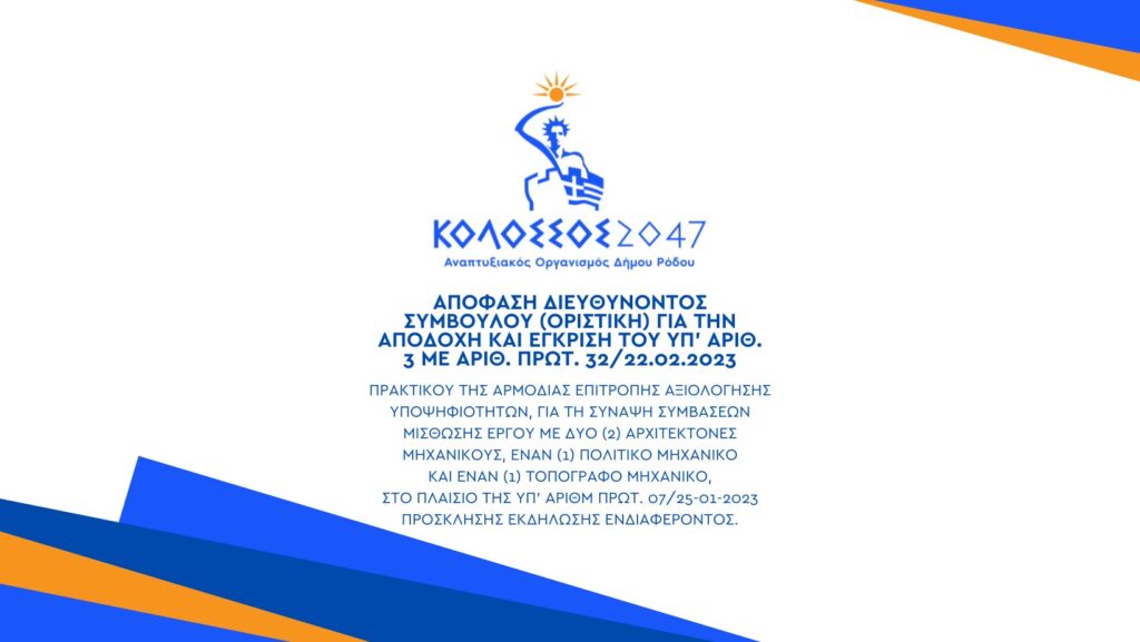 ΑΠΟΦΑΣΗ ΔΙΕΥΘΥΝΟΝΤΟΣ ΣΥΜΒΟΥΛΟΥ (ΟΡΙΣΤΙΚΗ) για την αποδοχή και έγκριση του υπ’ αριθ. 3 με αριθ. πρωτ. 32/22.02.2023 Πρακτικού